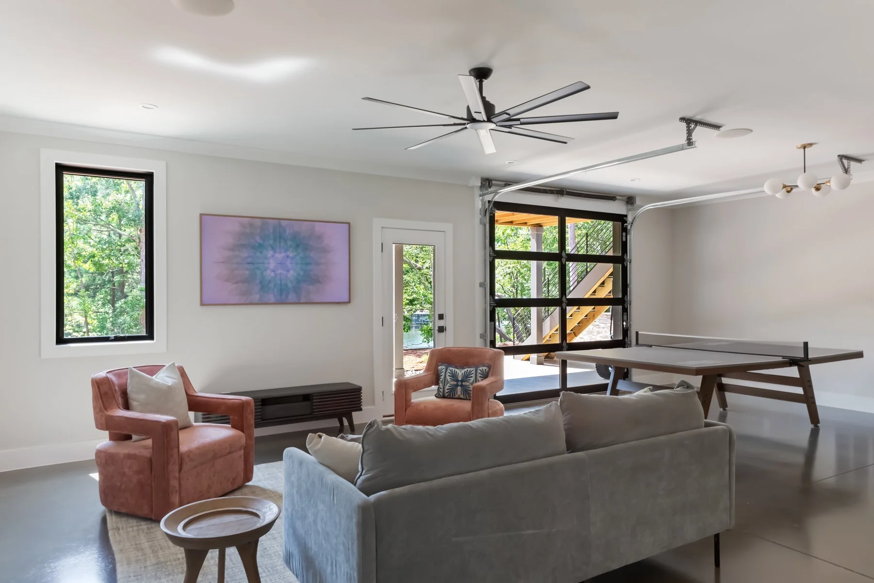 Offers fully equipped kitchen for all your entertaining needs. Including a large oversized fridge, nugget ice maker, cold water dispenser, oven featuring air fry technology, and hidden induction cooktop. Equipped with all the your kitchen needs including coffee maker, espresso machine and ice cream maker. Kitchen flows seamlessly to indoor dining or 10 person exterior dining on covered porch. Big a$$ fans keep you cool on the hottest days and Napoleon grill with 1200 degree searing station for outdoor grilling. Samsung frame tv displays art or with a touch of a button have access to all your streaming needs. Enjoy whole home audio system controlled through built in iPad and Starlink Internet.